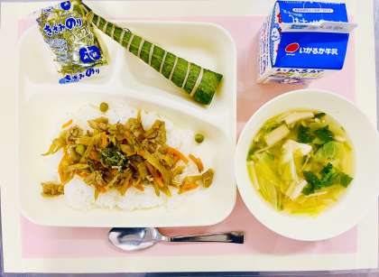 「ちまき」は、こどもの日の行事献立として毎年登場しています。「こどもたちが元気に成長しますように」という願いが込められています。