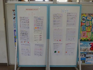 職員室前には、好きな給食メニューランキングが貼り出されています。カレーが断然1位かと思いましたが、2・5・6年だけが1位で、からあげが1・3・4年で1位となり、カレーとからあげが同点となりました。