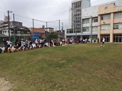 5月18日(日)、さざんか清江協議会主催の地域行事である「コアリンピック」が開催されました。「コアリング」という芝生の更新作業を、子どもたちと保護者、地域の方々が協力して行いました。当日は、大勢の方々の参加があり、抜き取って空いたコア穴の中に、砂を入れる作業を行いました。作業途中で、熱中症対策として、水分補給をしたり、チューペットアイスを食べて体温を下げたりしました。この作業の後には、お菓子等のお土産をもらい、子どもたちは大喜びでした。参加したみなさんのおかげで、芝生がさらに生き生きとしています。