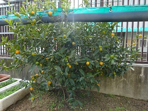 2月2日(火)冬の寒さの中、実をつけたり花を咲かせたりしている草木があります。正門を入ってすぐ右に、小さいオレンジ色の実をつけたキンカンがありす。玄関手前には、1年生が「人権の花運動」で植えたチューリップが芽を出し始めています。その奥の花壇では、色とりどりの花が植えられ咲いています。