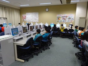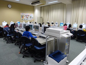 2月15日(月)3年生がパソコン教室で、インターネットの活用などをしていました。ほとんど自分でパソコンを操作していました。3年生は、インフルエンザなどで欠席者が多く出ました。パソコンデスクも空席が目立ちました。