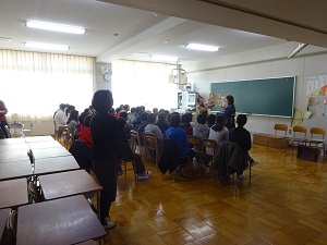 2月25日(木)図書館ボランティアや住之江図書館の方を招いて全学級(学級休業中の5年2組は後日実施)で「お話会」を行いました。紙芝居や絵本を朗読していただいたり、何も見ずに物語を語っていただいたりしました。どの学級の子どもたちも、真剣に朗読や語りに聞き入っていました。さらに読書好きになってもらえたらと願っています。