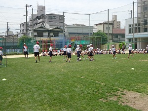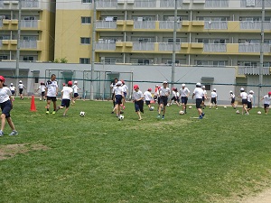 6月6日(月) トップアスリート・夢授業でセレッソ大阪の方が3名、コーチとして来ていただきサッカーの体験授業をしました。2時間目は3・4年生、3時間目は5・6年生がしました。ドリブルなどの練習の後、サッカーのゲームをしました。時にはコーチも入って、楽しく熱のこもったゲームをしました。