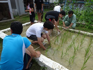 6月15日(水) 5年生が地域の方と一緒に学習園の田んぼで田植えをしました。はだしで泥田の中に入り、苗を一株ずつ手で植えました。泥の中も、田植えも初めての子どもが多く、ぎこちない動きでしたが、3度目ぐらいには上手にしていました。今日は、西原区長も来られ、子どもたちと一緒に田植えをされました。秋の収穫が楽しみです。