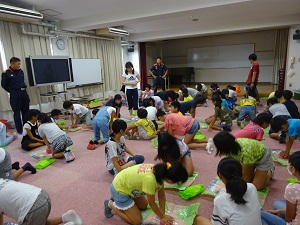 7月8日(金) 1時間目に全校で、たてわり班による「ふれあい集会」がありました。ゲームやクイズをしたり、全児童で歌を歌ったりして、楽しいふれあいの時間を過ごしました。午後には、6年生が救急救命救助法の講習を住之江消防署の方から受けました。AEDの説明や胸骨圧迫(心臓マッサージ)の練習もしました。とても真剣に学習ができていました。