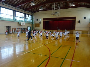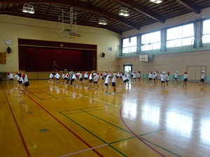 9月7日(水)体育館で1年生が、団体演技の練習をしていました。元気に体をいっぱいに使って、一生懸命踊っていました。早くも動きを覚えたようです。初めての運動会、練習の成果を、精いっぱい発揮してほしいものです。
