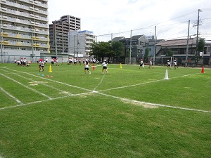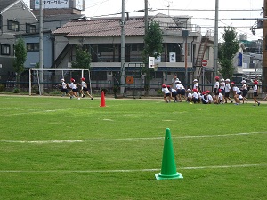 9月9日(金)4年生が団体競技の「台風の目」と短距離走の練習をしていました。「台風の目」はコーンを回るときの棒の回し方やゴールした後、待っている人の下や上を棒を持って走るのが難しそうでしたが、楽しそうに練習をしていました。その後、個人走の練習をしていました。風が秋の気配を含んで、練習にちょうど良い天候でした。