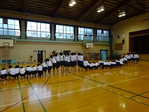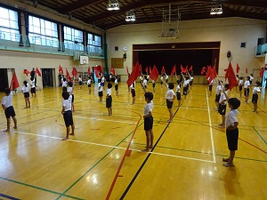 9月29日(木)雨のため6年生は体育館で団体演技の練習をしました。力強くそろってふられる旗の風を切る音が圧巻です。また、いろいろな組技も仕上がりが安定してきました。6年生最後の運動会、当日の晴れ姿を期待しています。