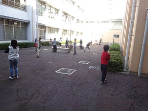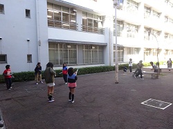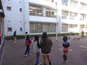 12月5日(月)先週の金曜日に中庭で、4年生が水鉄砲と空気鉄砲を使って活動をしていました。筒に水を入れて押し棒で押すと水鉄砲になり、同じ筒にスポンジ玉を詰めると空気鉄砲になります。空気鉄砲はポンポンと軽やかな音を鳴らしていました。