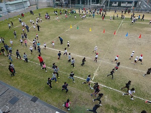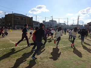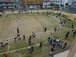2月2日(木)今日もかけあし週間の持久走がありました。トラックを4・5・6年が走り、その内側を2・3年、さらにその内側を1年が走ります。走ることができない子どもは一番外側を歩き、外にも出られない子どもは図書室で休憩です。たくさんの子どもが今日も元気に走っていました。