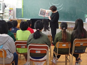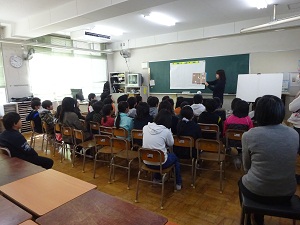 2月3日(金)全学年でお話会がありました。絵本の語り部の方などが来校して、絵本の読み聞かせや紙芝居、本も見ずに覚えたお話を語るなどをしていただきました。子どもたちは、静かにお話に身を乗り出して聞き入っていました。