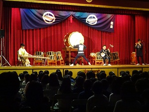 2月6日(月)先週土曜日にPTA音楽会がありました。和楽器演奏集団「独楽」の皆さんによる太鼓や琴・横笛・三味線の演奏でした。楽器紹介での軽妙な話や迫力のある太鼓の演奏などで、1時間があっという間に過ぎました。子どもたちも太鼓をたたく体験があったりで、とても喜んで楽しい時間を過ごしました。運営をしていただいたPTAの皆様、ありがとうございました。