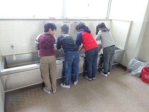 2月22日(水)今週は手洗い・うがい週間です。20分休み終了5分前には、手洗い・うがいを呼びかける保健委員会による放送が入ります。子どもたちは、給食室前や教室の近くの水道で手洗い・うがいをします。給食時には、手洗いの音楽や保健委員会のウイルスなどのクイズ・給食後のぶくぶくうがいの呼びかけの放送があります。