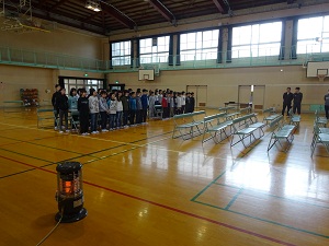 3月13日(月)5・6年合同での練習が始まり、卒業式の練習が本格的になってきました。今日は式の全体を通しての練習で、流れをつかみ、細かな動きなども練習します。(写真は金曜の様子)いよいよ卒業式までの登校は、6日となりました。よい卒業式ができるよう、子どもたちは熱心に練習をしています。