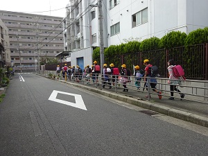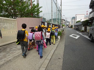 4月21日(金)5時間目に地区別子ども会の集まりがありました。その後、体育館に集合してから集団下校をしました。台風などの災害時に、家が近くの地域ごとに集団下校をする練習でした。新しい班長も、しっかりと役割を果たしていました。