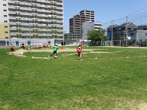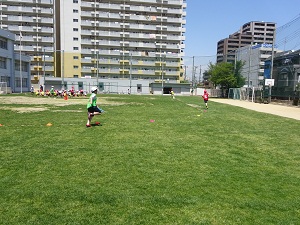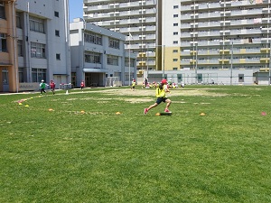 4月28日(金) 春の陽気の中、5年生がバトンリレーをしていました。着順により次走者のコースを入れ替えるコーナートップをしていました。暖かくさわやかな風で、運動するにはとてもいい季節になりました。