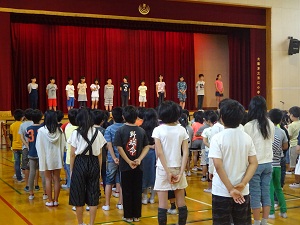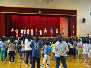 5月15日(月)児童朝会で各委員会の委員長と前期代表委員の紹介がありました。一人ずつ決意の言葉をしっかりと言えていました。「笑顔いっぱいの学校にしたい」など、うれしい言葉でした。活発な児童会活動になると思います。