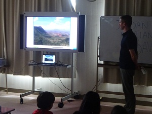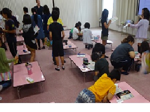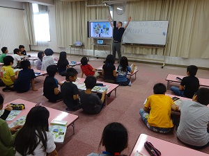 6月7日(水)今年も英語のネイティブスピーカーの先生を招いて、5・6年の英語学習をしています。5年生では、あいさつの仕方を学習して、友だちと英語であいさつをしました。そして、あいさつを交わした友達の名前を教科書に書き入れていました。その後、DVDの映像で各国のあいさつの言葉や子どもの名前を英語で聞きました。
