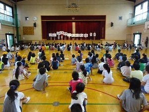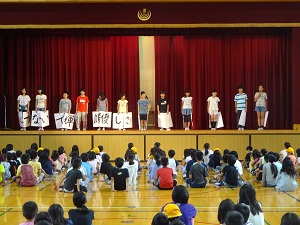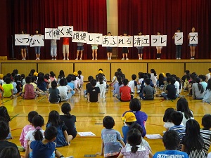 6月22日(木)児童集会で代表委員から、今年度の児童会のスローガンが発表されました。各学級からの意見をまとめて「心つないで輝く笑顔 優しさあふれる清江フレンズ」に決定しました。素晴らしいスローガンが実現できるようにしてい行きたいと思います。