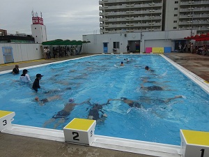 7月4日(火)台風が近づき天気が心配される中、5・6年の水泳学習参観がありました。子どもたちは、プール水泳を楽しみながらも、一生懸命泳いでいる姿をおうちの人に見てもらえるようにとがんばっていました。