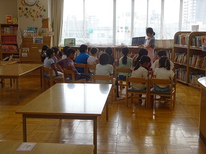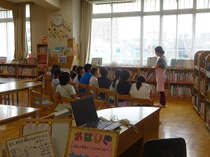 7月18日(火)毎週火曜日には、図書館支援員の方が来ています。20分休みに、今日は3・4年生を対象に読み聞かせを図書館指導員の方がしていました。子どもたちが絵本を見ながら、お話に聞き入っていました。自分で本を読んでいる子どももいました。