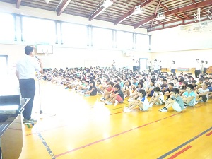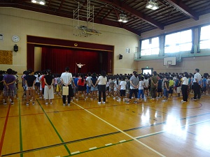 8月25日(金) 今日は始業式です。式では、元気な声であいさつをして、転入生の紹介や表彰がありました。最後に全校で校歌を歌いました。運動場にも、元気な子どもたちが戻ってきて歓声があふれていました。