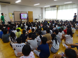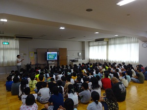 8月28日(月) 4年生・5年生・6年生と保護者が集まり「スマホ携帯安全教室」が行われました。講師の方から安全に使うために知っておくことや注意しないといけないことなどを、映像を交えわかりやすく教えてもらえました。お家でも安全な使い方などを話し合ってみてはいかがでしょう。