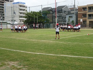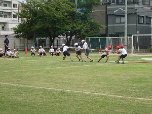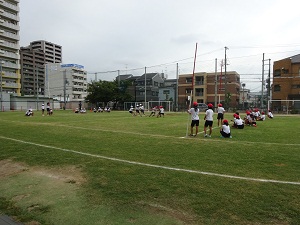 9月6日(水) 5年生が運動会の団体競技、棒引きの練習をしていました。始めは1対1の対抗戦で、力技の見せ所のようです。2回戦は、自分のチームが決着がついた後も他のチームの応援に行くことができ、どのチームの応援にするか、頭脳戦にもなりそうです。