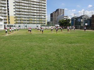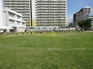 9月19日(火) 晴れ渡った空の下、3年生が運動会のダンスの練習を運動場でしていました。リズムに乗って体を動かし、隊形も移動しながら練習していました。もう完成も間近のようです。