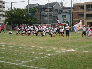 9月20日(水) 運動会の練習は、どの学年も団体演技が完成間近になりつつあります。5年生が運動場で団体演技の練習をしていました。力強いソーラン節の動きに合わせ大漁旗をふったり、最後のきめの隊形や動きをなんども練習したりして、一生懸命練習していました。