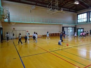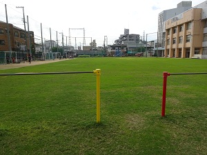 10月18日(水) 久しぶりに晴れ間がのぞいた運動場、冬芝の芽が伸びていました。きれいな薄緑色のじゅうたんです。もうしばらく、根がしっかりはるまで養生をします。その間子どもたちは、地面の場所や体育館で遊びます。4年生がボール遊びを元気にしていました。