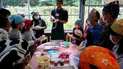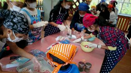 昼食も終わり、買い物が始まっています。(プログラムを入れかえました。)全員元気に活動を行っています。
