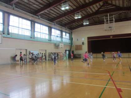 学校では現在、運動場は冬芝の芽が育ちだして、きれいなグリーンのじゅうたんになっています。もう少しの間、運動場では活動ができないので、体育館を開放しています。今日の昼休みは、5年生が体育館で遊んでいました。