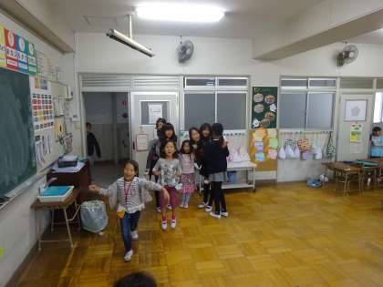 給食のあとも、教室では、1年生からおんぶをせがまれ、それにこたえる6年生のやさしい姿がありました。「笑顔あふれる清江小」の一幕でした。