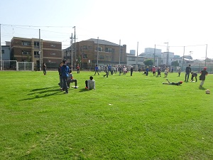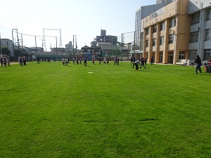 11月6日(月) 子どもたちが待っていた芝生の開放が今日から始まりました。これまで、冬芝の養生のため芝生に入るのを我慢していましたが、朝から芝生の感触を楽しむように遊んでいました。20分休憩もドッジボールや手打ち野球などで、芝生の運動場でのびのびと遊んでいました。