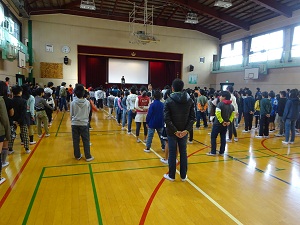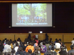 11月22日(水) 今日は清江小学校の創立記念日で、全校でお祝いの集会をしました。たてわり班になって、クイズや風船ゲームをしてみんなで楽しんだ後、今年のいろいろな行事をスライドを見て振り返りました。最後には、お誕生日の歌と校歌を歌いました。お祝いの楽しいひと時でした。