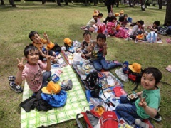 5月8日(木)1・2年生が、浜寺公園に行ってきました。有名なバラ庭園を見学した後、遊具で遊びました。その後、お待ちかねのお弁当の時間です。1年生にとっては、小学校での初めての遠足です。愛情いっぱいのお弁当を、とてもうれしそうに食べていました。お菓子も食べて、ゆっくりした後に移動して、別の遊具で遊びました。