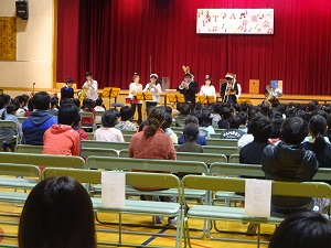 12月2日(土)土曜授業でPTA音楽会がありました。相愛大学音楽部の楽しく素晴らしい演奏を聴くことができました。子どもたちは演奏に合わせ手拍子をしたり歌を歌ったりして楽しい時間を過ごしました。最後には、校歌を演奏してくださりみんなで一緒に歌いました。相愛大学とPTAの準備・進行いただきました皆様、ありがとうございました。