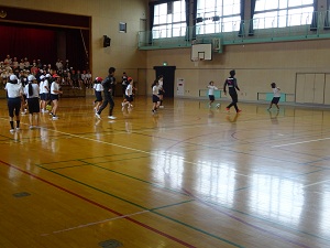 12月11日(月)トップアスリート夢授業でセレッソ大阪から3名のコーチや選手が来校しました。3年生〜6年生までが、サッカーの夢授業を行い、体をほぐす動きをした後、チームに分かれれてそれぞれが3人の選手と対戦しました。ドリブルの多彩な技やスピードに子どもたちは驚嘆の声をあげながら楽しくゲームをしていました。