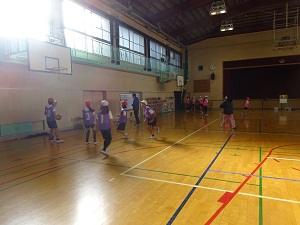 12月14日(木)6年生が体育でバスケットボールをしました。チームそれぞれで、めあてを持って練習メニューを立て、チーム内ミニゲームなどをしました。その後、チーム対抗のゲームとなり、全員がよく動き回り迫力のあるゲームをしていました。