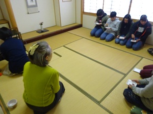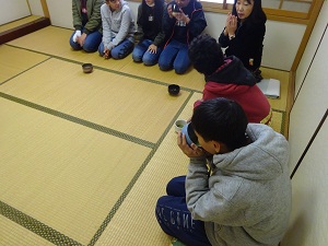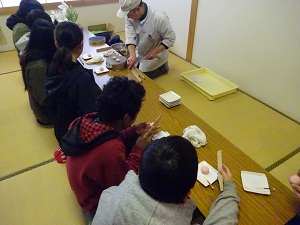 12月21日(木)6年生が和室で、はぐくみネットの地域の方や和菓子屋さんを招いてのお茶席体験をしました。グループごとに、まず和菓子の自分の分を作りました。和菓子職人の方に作り方を教わり、恐る恐るでもなんとか模様をつけていきました。それを茶室でいただきました。お菓子の食べ方やお茶の飲み方は、地域の方に教わりました。ぎこちない動きながら貴重な日本文化の体験をすることができました。ご協力いただきました皆様、ありがとうございました。