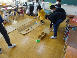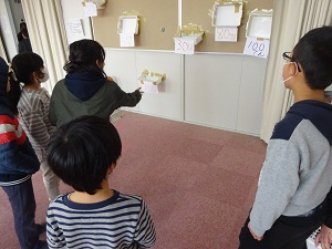 1月20日(土) 土曜授業で清江まつりを行いました。各教室でお店を行い、たてわり班で、それぞれのお店を回ります。いろいろ工夫されたお店が出ていました。各お店では、呼び込みやルール説明の声、楽しい喜びの声が上がっていました。