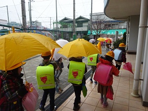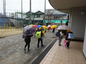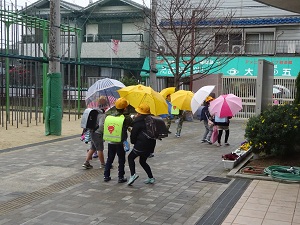 1月22日(月) 冷たい雨が降ってきました。色とりどりの傘をさして友だちと下校していきます。車や自転車に気をつけて帰りましょう。