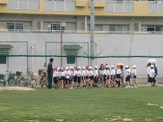 運動場で、体育の授業(合同体育)をご覧いただきました。