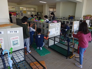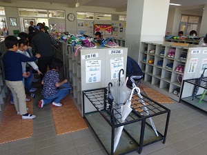 3月14日(水) 今年度もあとわずかとなりました。教室だけでなく、くつ箱も次の学年が使うことになります。これまでの汚れをきれいにして、次の学年に引き渡すため、今日は2年・4年・6年が掃除をしました。