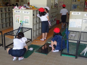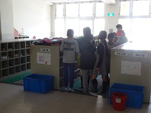 3月15日(木) 昨日に引き続き、玄関が混雑しないように今日は1・3・5年がくつ箱の掃除をしました。担当の人が学級分を掃除するところと一人ずつ自分のところを掃除するところがありました。傘たてもきれいにしました。