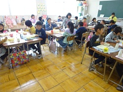 3月22日(木) 今日は、今年度の給食が最終の日です。みんなで楽しく、給食をいただきました。1年間、おいしい給食をいただいて体も大きく成長しました。給食ともしばらくお別れです。