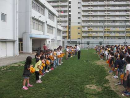 台風一過でとてもよい天気となりました。週はじめに、素晴らしい知らせがありました。住之江区の子ども会のソフトボール大会で第三位に、女子キックベースボール大会では準優勝に輝きました。子どもたちのがんばりをとても喜ばしく思います。今後も努力を重ねてほしいものです。