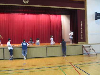 放課後の体育館では児童会の代表委員が、明日の児童朝会の打ち合わせと練習をしていました。がんばって清江小を盛りあげていってほしいものです。