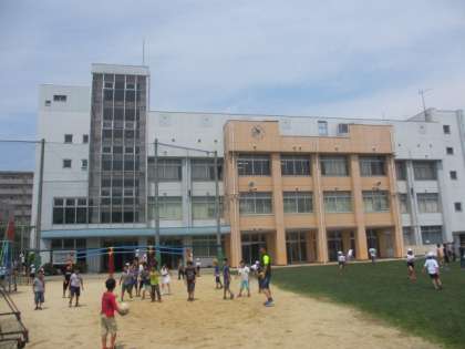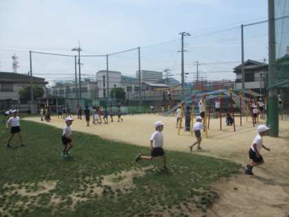 本日は朝から晴天で、気温もかなり上がりそうです。休み時間の運動場は、多くの子どもたちが元気いっぱい、所狭しと遊んでいます。